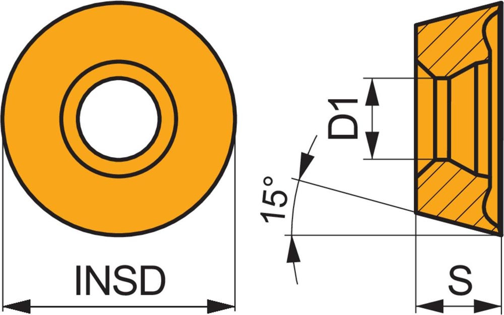 Einseitige Fräswendeschneidplatte RDHT 12T3 mit Spanbrecher · Rund für eine maximale Schnitttiefe von 3.0mm · mit eine Indexierungsgenauigkeit gemäß ISO-Toleranzklasse-H und FA Geometrie · HF7 unbeschichtet WC-Co Feinkornsubstrat in der ISO-Gruppe N10 -N25 zum bearbeiten von Nichteisenmetallen mit Kopierplanfräsern SRD12