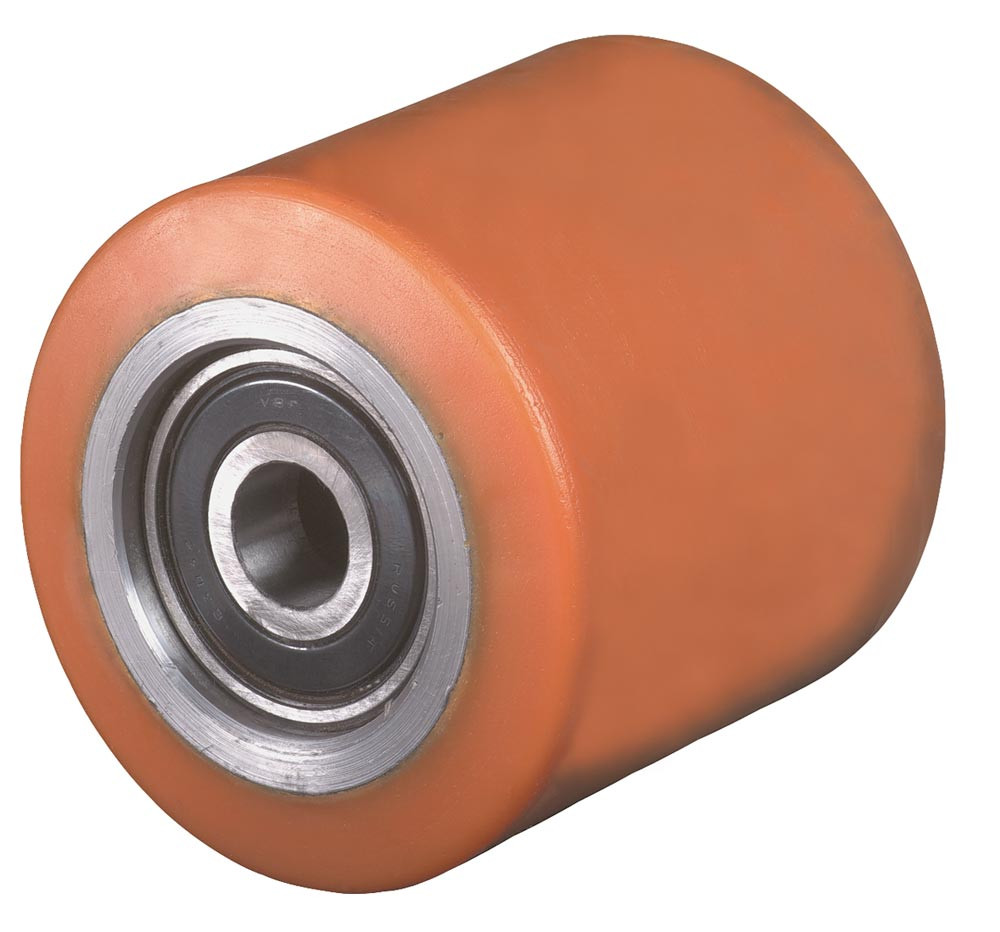 Gabelrolle für Hubwagen, Polyurethan 95+/-3, Durchm.xB 82x90 mm, Naben-L 90 mm, Traglast 900 kg, Kugellager
