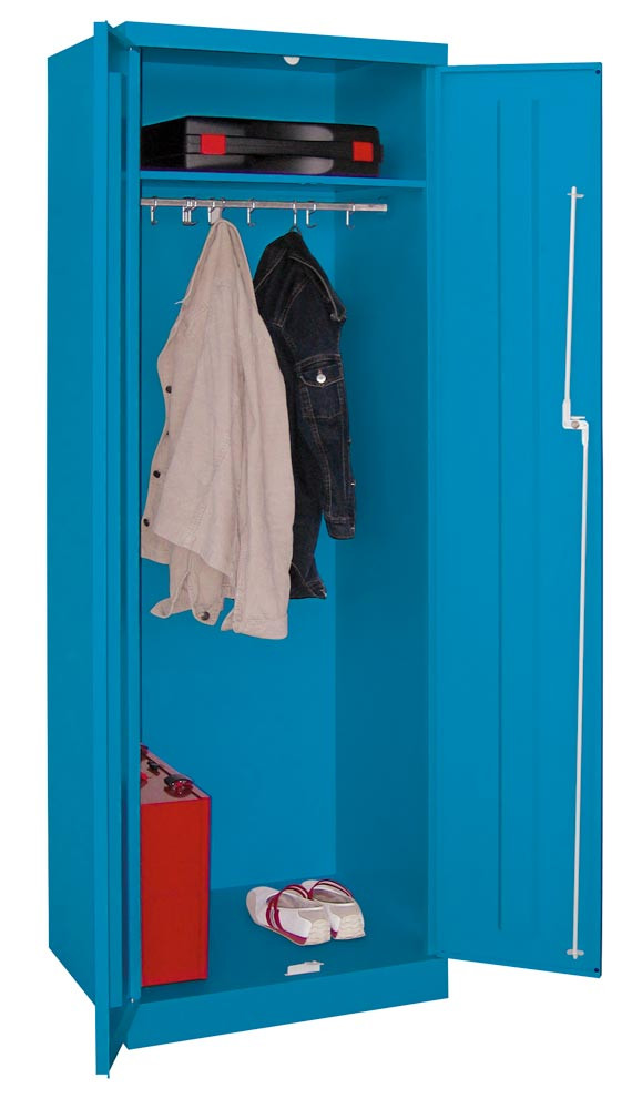Garderobenschrank mit Sockel, 1 fester Fachboden, 1 Stange mit 10 Haken, BxTxH 600x500x1800 mm, RAL 5015 E1574975