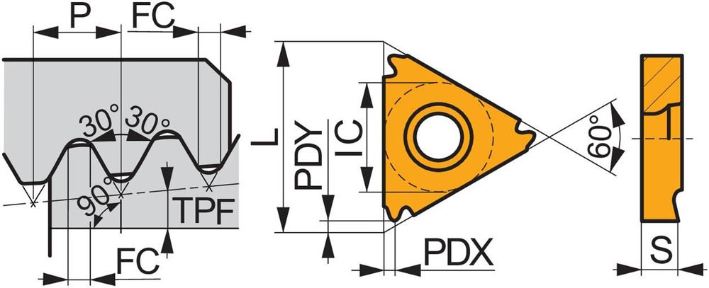 Gewindedreh-Wendeschneidplatte ISO TN 16NR100API-RD01:T8030 Innenkreis-D. 9,525mm PVD beschichtet Farbe Gold