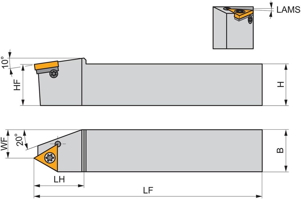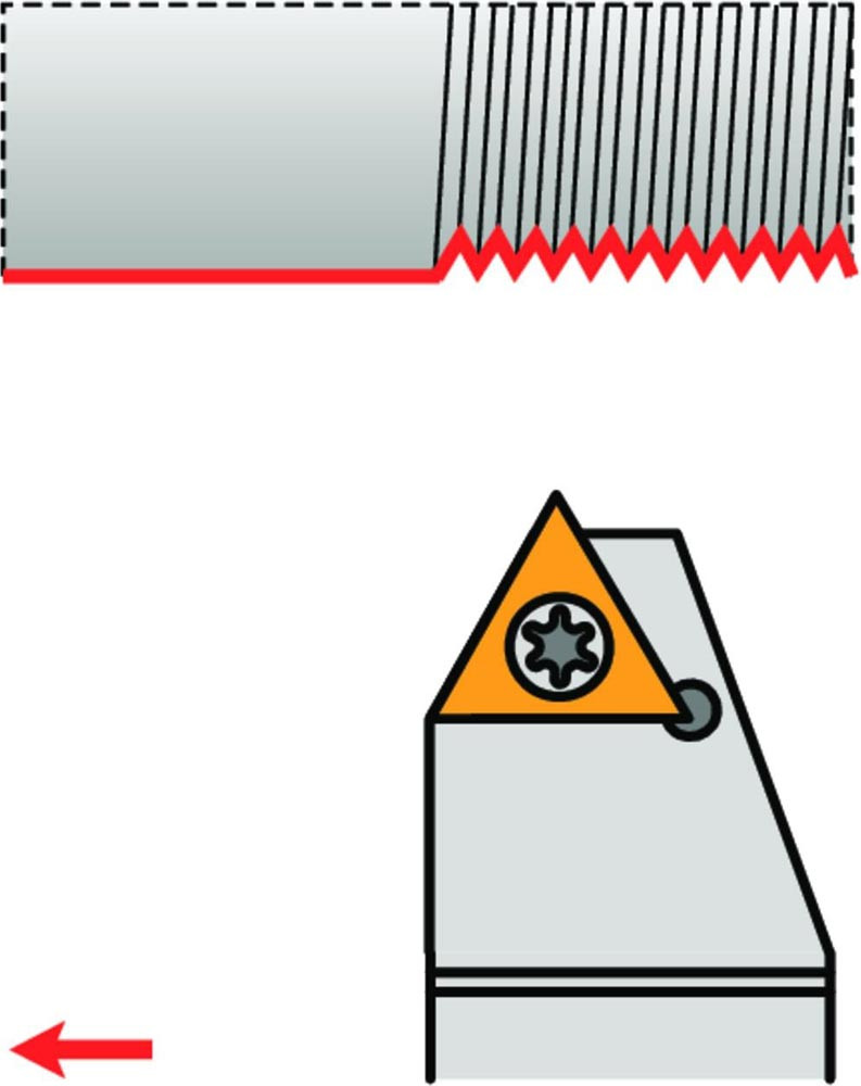 Schraubgeklemmte Gewindedrehhalter mit 1.5° Helixwinkel zum spannen einer dreieckigen Wendeschneidplatte mit einem Innenkreisdurchmesser von 12.7mm (Bezeichnung TN 22EN.. ) · rechte Sonderausführung mit Zylinderschaft · 32mm Werkzeughöhe 25mm Breite und 170mm Gesamtlänge zum Außengewinden