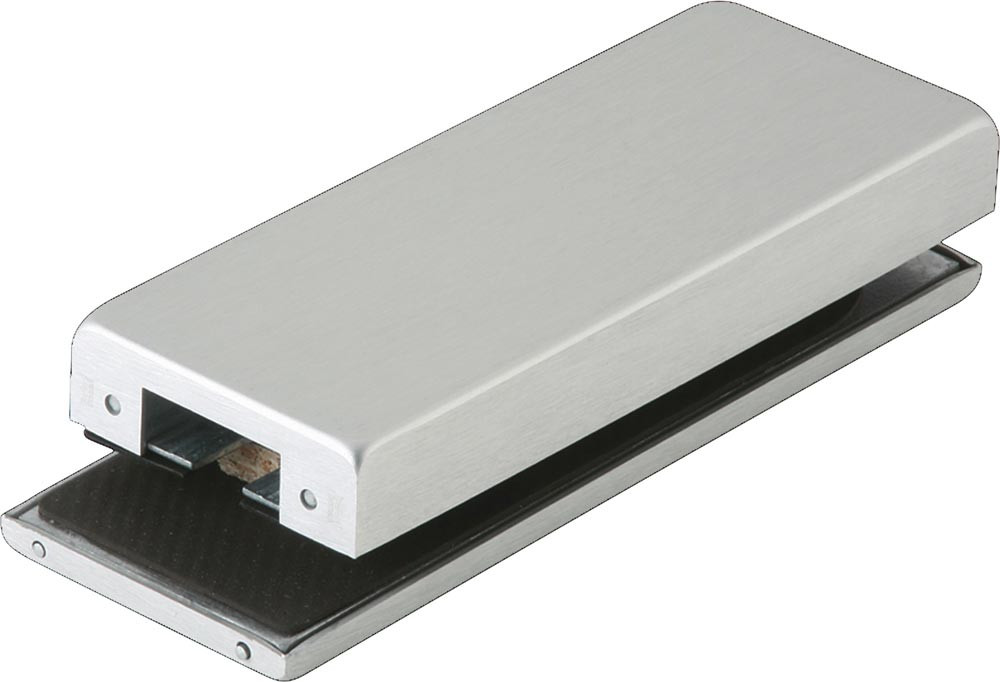 mit rechteckigen Kappenende, zur Glasmitte zeigend · für 8 mm Glasdicke und 24 mm Falztiefe bzw. für 10 mm Glasdicke und 26 mm Falztiefe · DIN links / rechts verwenbar · Material Aluminium · für ESG 8 bzw. 10 mm · max. Türflügelgewicht: 60 kg / 80 kg (OFFICE Bänder) · Schlosskasten Abmessungen (BxHxT): 180x65x37 mm