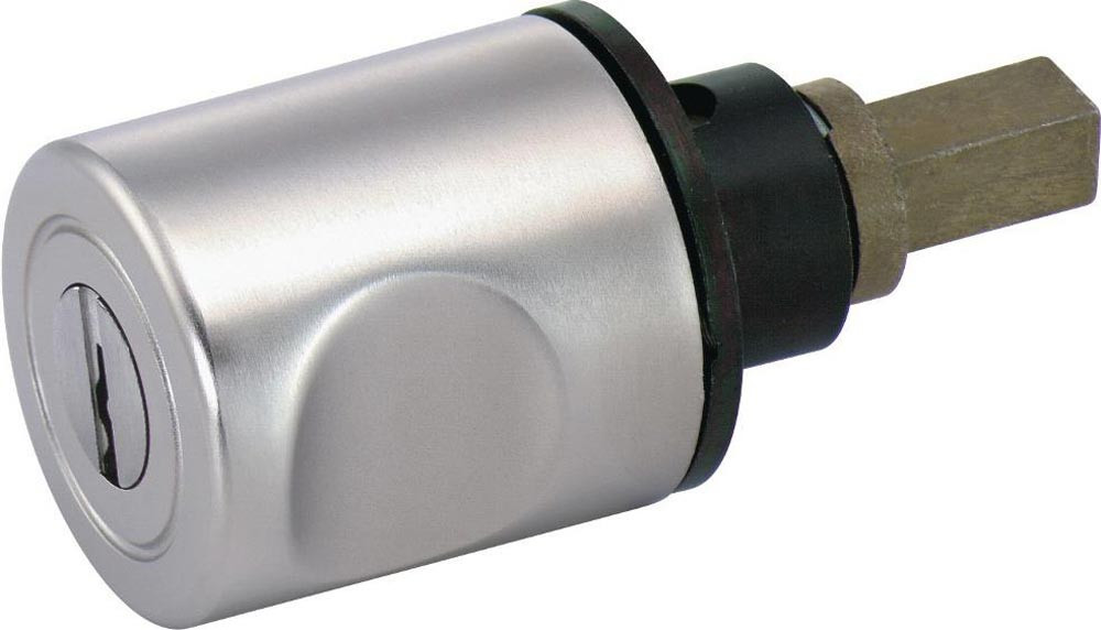 dreh- und verschließbar · ø 30 mm · 2 Griffmulden · Schließrichtung rechts · mit Stiftzuhaltungen · Metall vernickelt · 7 mm Vierkantstift · Rosette Metall schwarz gefärbt · für ø 18 mm Bohrung · für 16 - 26 mm Materialstärke · verschiedenschließend · 2 Schlüssel