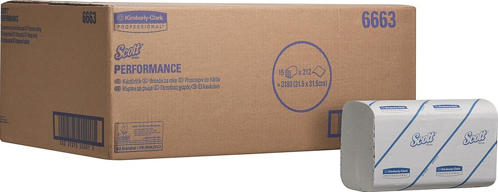 Handtuch Scott® 6663 1-lagig, geprägt weiß L.ca.315 mmxB.ca.215 mm passend für 9000474108 3180 Tücher/VE E6017878