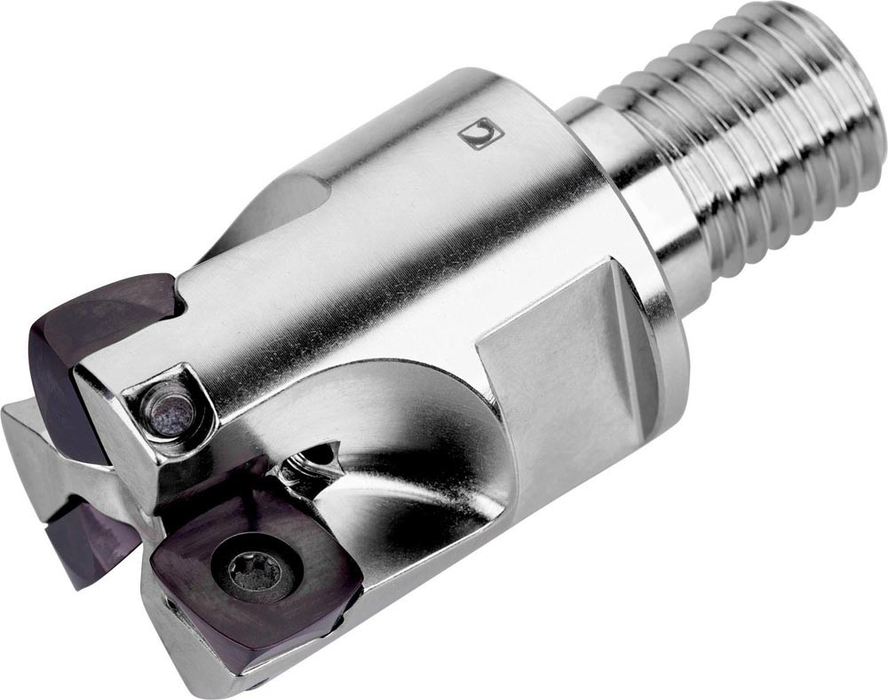 Hochvorschubfräser mit positiver/negativer Geometrie zum spannen von 3 Stück ZDEW 1204.. einseitigen Wendeschneidplatten · Schnittdurchmesser 32mm mit M16 Gewindeschaft für modulare Standardhalter · 40mm Überstandslänge · Kühlkanalbohrung zum Planfräsen
