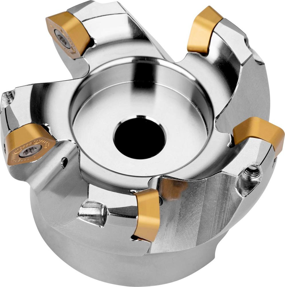 Hochvorschubfräser mit positiver/negativer Geometrie zum spannen von 6 Stück PD.X 0905ZE.. · PDKT 0905.. oder PDMW 0905.. einseitigen Wendeschneidplatten · Schnittdurchmesser 66mm mit 19° Anstellwinkel und 22mm Verbindungsbohrung gemäß DIN 8030-A · 40mm Überstandslänge · Kühlkanalbohrung zum Planfräsen mit einer maximalen Schnitttiefe von 2.0mm