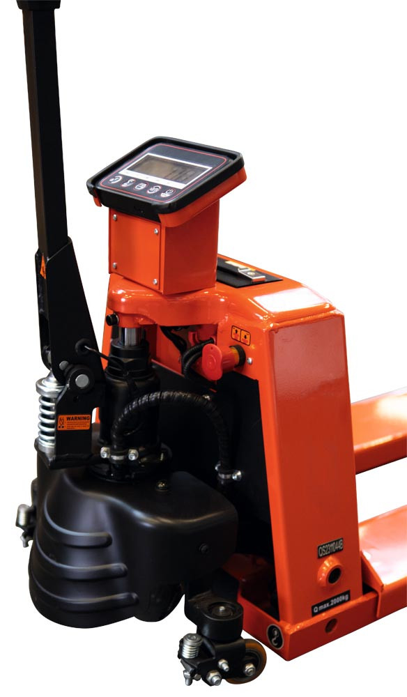 Hubwagen mit elektrischem Fahrantrieb und Waage, Traglast 2000 kg, Gabellänge 1150 mm, Bereifung Polyurethan