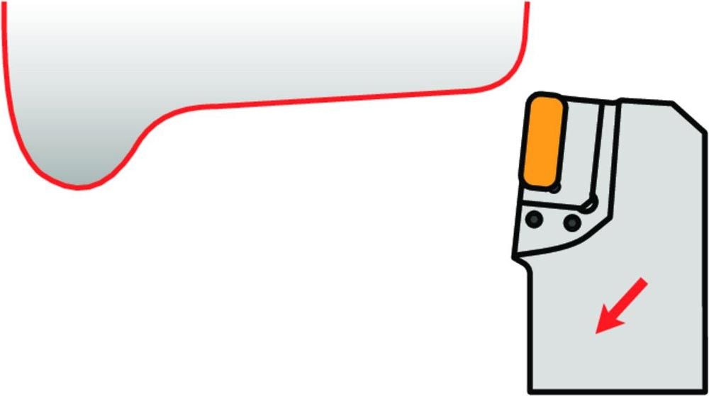 Modular Drehsystem mit Knieheblklemmung zum spannen von Rechteckig negative Wendeschneidplatten mit einer Hauptschneidenlänge von 19.05mm (ISO Bezeichnung LN.X 1919.. ) · für die Radsatzbearbeitung · zur Montage mit DKTL 5055 X (A1/A2) für Kegeldrehen und Längsdrehen ohne Schulter