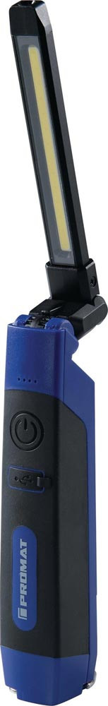 leistungsstarke Power LED CRI 80 5W + 3W mit Taschenlampenfunktion · über 2 Achsen flexibel schwenkbar · starker Magnet und ausklappbarer Haken · Akkulaufzeit je nach Lichtstärke 2-20 h · Schutzart: IP54/IK07
