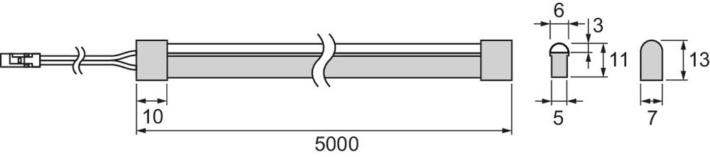 flexibles LED Band · homogene Ausleuchtung · Lieferung inkl. Befestigungsmaterial und Endkappen mit Kleber · Lebensdauer 30000 h · Schutzart IP67 · Abstrahlwinkel 90° · 2 Zuleitungen · kürzbar · diese Leuchte enthält eingebaute LED-Leuchtmittel · einseitig selbstklebend · Energieeffizienzklasse F
