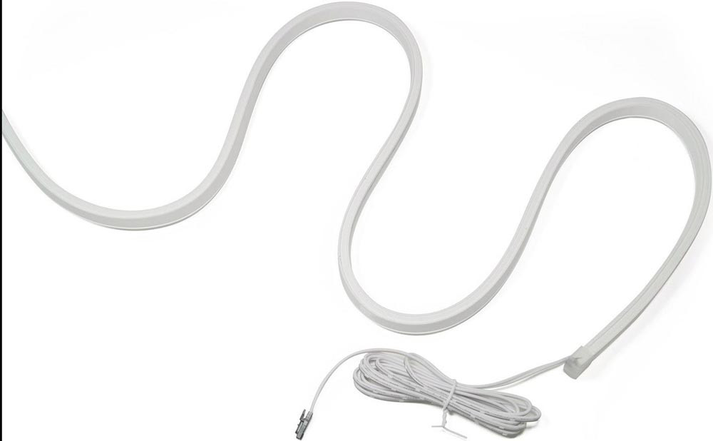 flexibles LED Band · homogene Ausleuchtung · Lieferung inkl. Befestigungsmaterial und Endkappen mit Kleber · Lebensdauer 30000 h · Schutzart IP67 · Abstrahlwinkel 90° · 2 Zuleitungen · kürzbar · diese Leuchte enthält eingebaute LED-Leuchtmittel · einseitig selbstklebend · Energieeffizienzklasse F