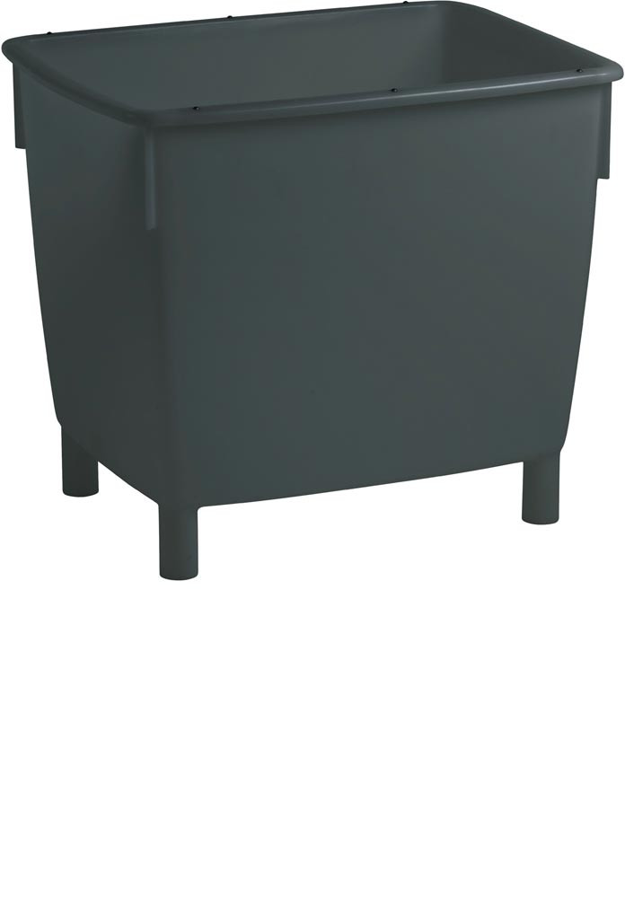 zum Lagern und Transportieren · mit Ablaufloch und Verschlussstopfen · glatte Flächen ermöglichen eine einfache Reinigung · resistent gegen Säuren · ineinander und mit dem Spezialdeckel aufeinander stapelbar · Farbe basaltgrau · Behälter: