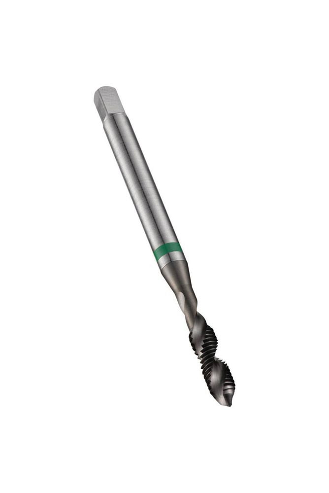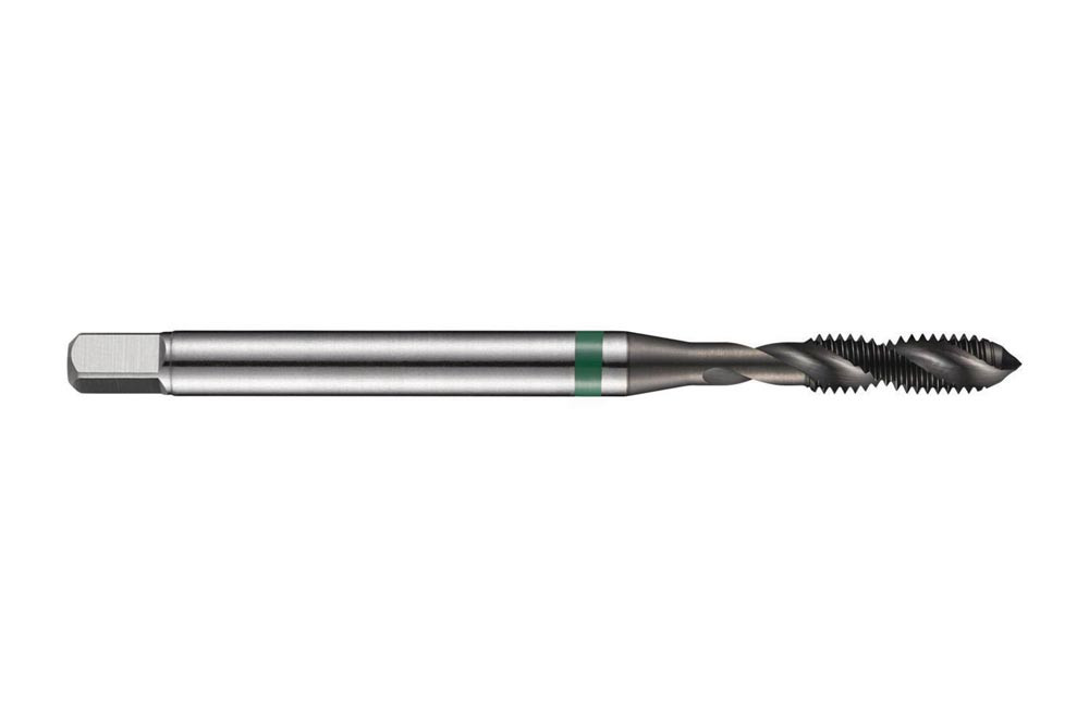 Spiral genuteter Gewindebohrer Green Shark · Anschnittform C mit 2-3xP Gewindeanschnitt · ISO-Metrisches Gewinde M3 mit 0.50 mm Steigung und 6H Toleranzklasse · Abmessungen nach DIN 371 Standard mit 3.5mm Schaft und 2.7mm Vierkantantrieb · HSSE-PM mit Super-B Beschichtung und 35° Helixwinkel 2.5xD Sacklochgewinde in Aluminiumguss