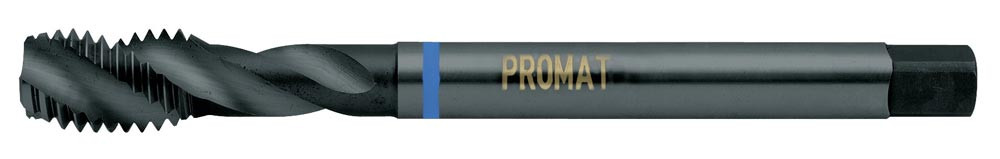 HSS-Co · Form C · Typ VA · nitriert und vaporisiert · Blauring · mit Rechtsdrall 40° · Flanken hinterschliffen · metrisches ISO-Gewinde · DIN 13 Blatt 1 · Toleranzfeld ISO2 (6H) · für Sacklochgewinde · für rost-, säure- und hitzebeständige Stähle > 850 N/mm² Festigkeit