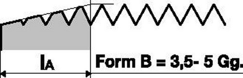 HSS-Co · Form B · Typ VA · nitriert und vaporisiert · Blauring · geradegenutet · Flanken hinterschliffen · Whitworth-Rohrgewinde G · nach DIN ISO 228 · für Durchgangsgewinde · für schwer zerspanbare Werkstoffe, z.B. rost-, säure- und hitzebeständige Stähle > 850 N/mm² Festigkeit