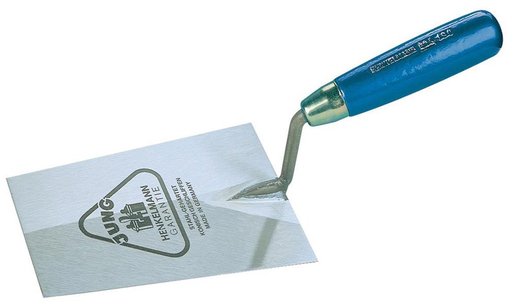 Qualitätsstahl · gerader Hals · konisch geschliffenes Blatt · gelb chromatierte Zwinge · polierter Grat · lackiertes Buchenholzheft · DIN 6440B