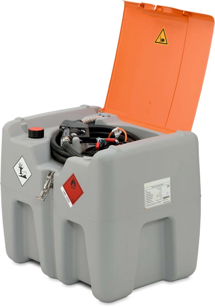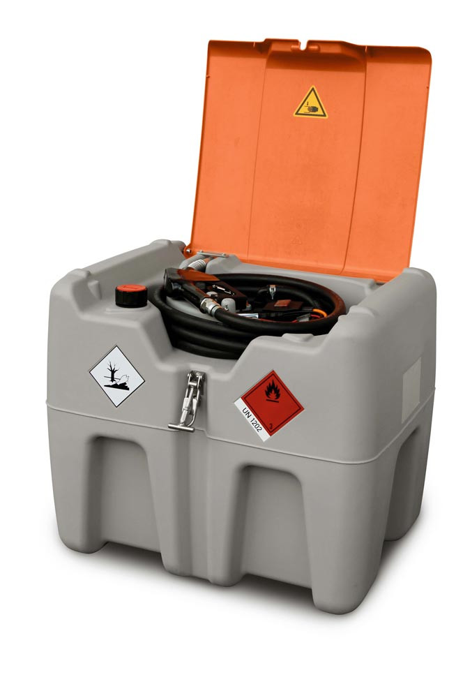 Mobile Dieseltankstation, Vol. 210 l, mit Klappdeckel, Elektropumpe 12 V, 30 l/min und Automatik-Zapfpistole