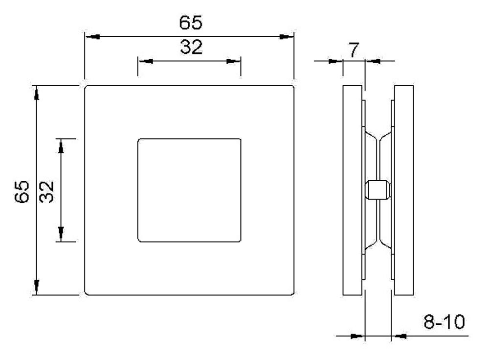 Schiebetürmuschelgriff für Glastüren 8-10 mm · inkl. 4 Klebestreifen · Abmessung 65 x 65 mm · Montagehinweis: