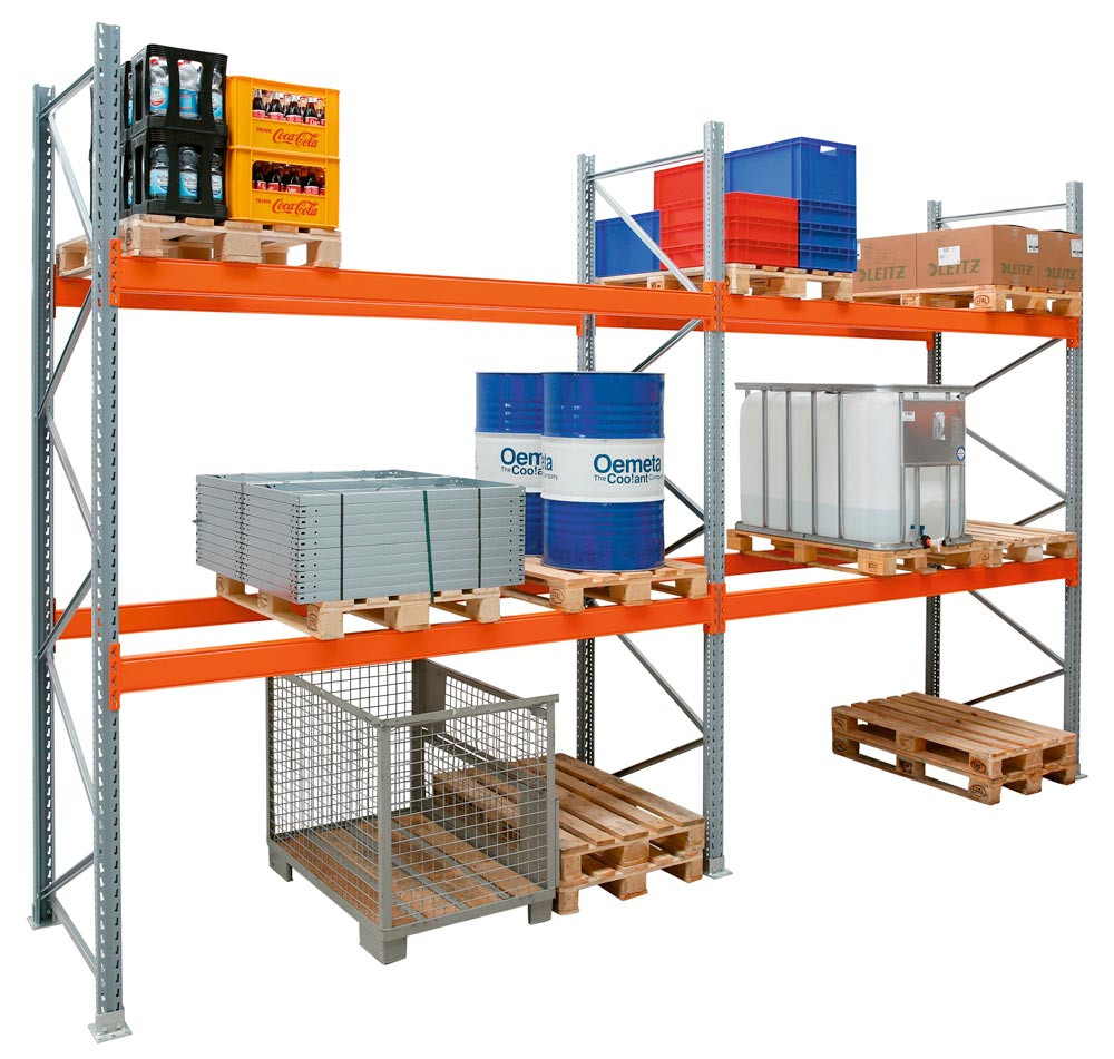 Palettenregal, Grundfeld, 2 Lagerebenen, Fachlast 3000 kg, Feldlast 6000 kg, BxTxH 1900x1100x3000 mm E6411131