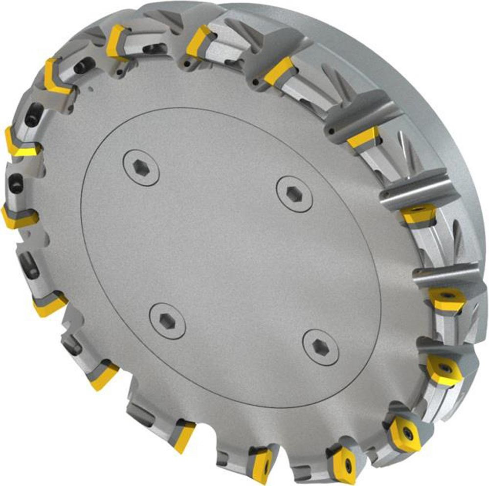 Planfräser mit positv/negativer Geometrie welche 16 aus SDET 13T3.. · SDMT 13T3.. oder XDET 13T3.. einseitige Wendeschneidplatte · Schneiddurchmesser 200mm bis maximal 212,8mm mit 45° Anfahrwinkel und 60mm Bohrung gemäß DIN 8030-C · 63mm funktional und · durchgehende Kühlung und ungleicher Teilung zum Planfräsen und Entgraten mit einer maximalen Schnitttiefe von 6,4mm