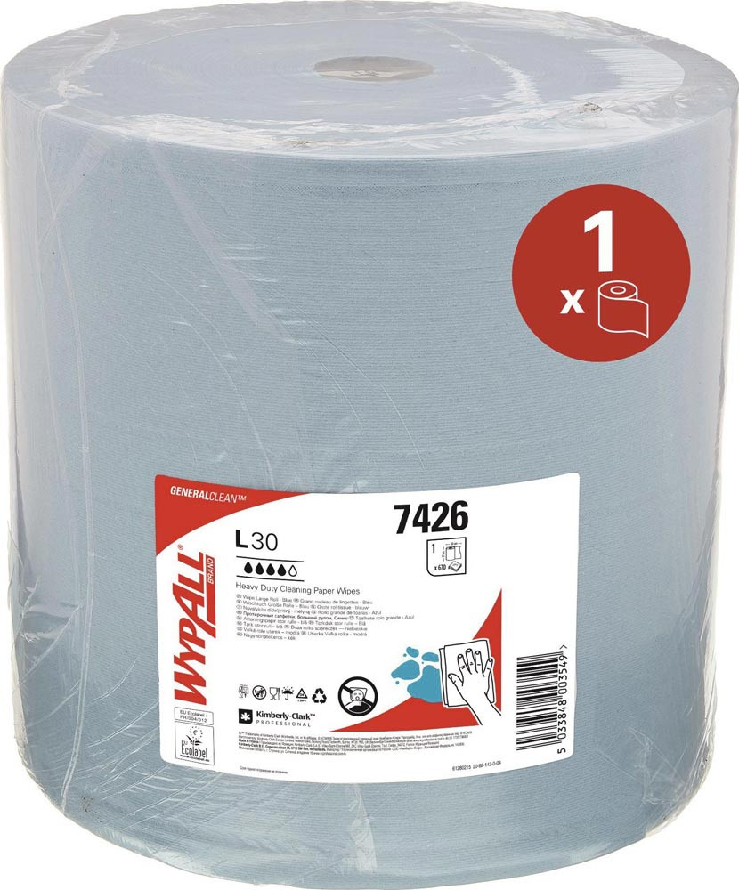 Putztuch WYPALL L30 ULTRA 7426 L.ca.380 mmxB.ca.370 mm blau 3-lagig, perforiert Rolle E6462737