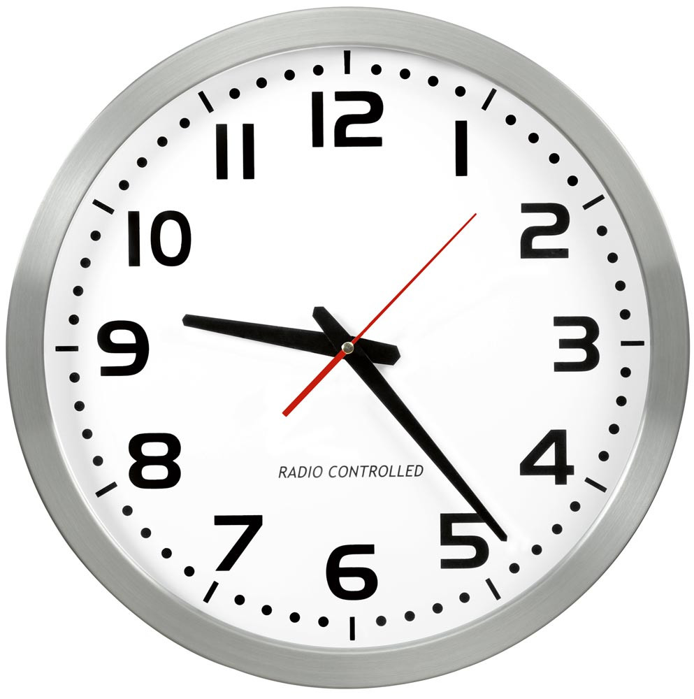 Funk-Wanduhr, Durchm. 400 mm, Edelstahlgehäuse, Ziffernblatt weiß, arabische Ziffern, inkl. Batterie E878788