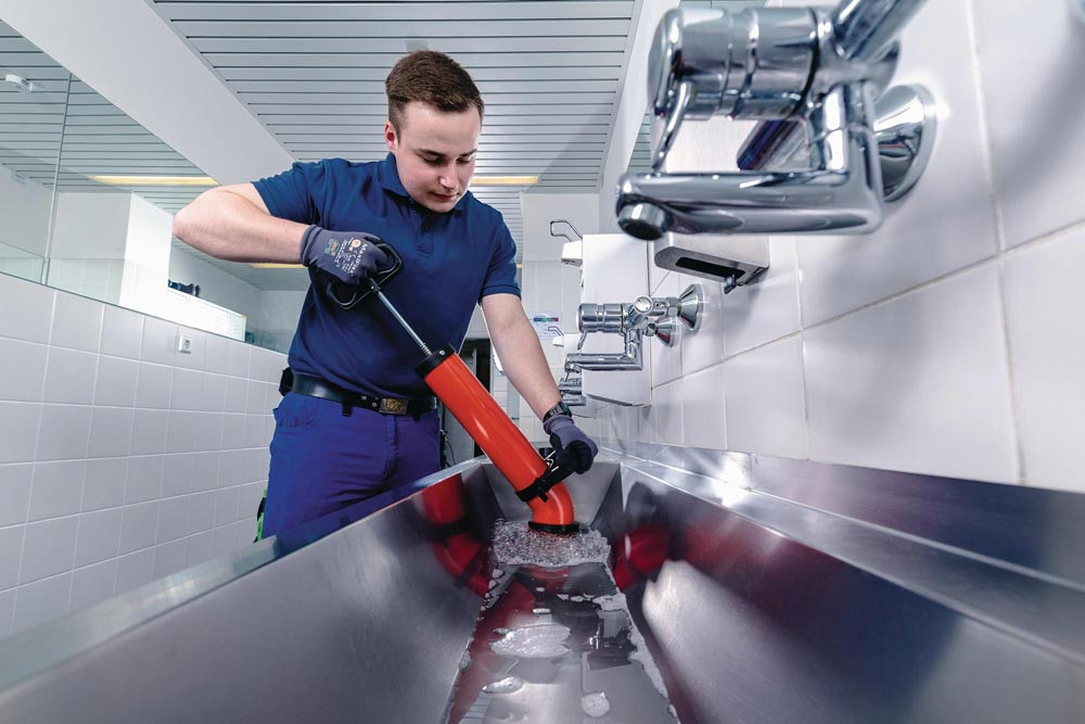 mit breitem Adapter · optimales Einsteigerwerkzeug für für Installateure, Hausmeisterservice und Rohrreiniger zum schnellen Beseitigen einfacher Verstopfungen in Anschlussleitungen von Wasch- und Spülbecken, Wannen und Toiletten mittels Saug/Druck-Prinzip