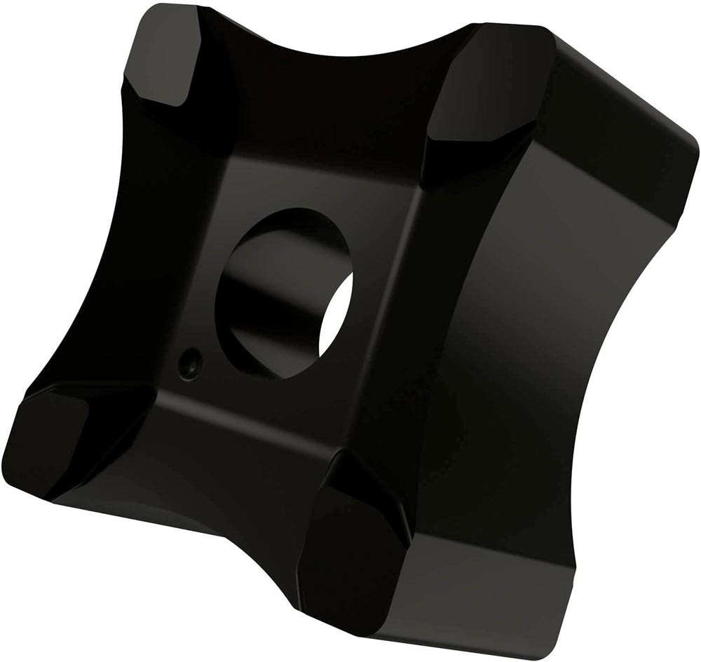 Doppelseitige Scarfing Wendeschneidplatte · quadratisch mit einer Hauptschneidenlänge von 15.875mm · 8.15mm dick und einen Arbeitsradius von 13mm für Rohrdurchmesser von 15 bis 19mm · T9335 MT-CVD beschichtetes funktionelles WC-Co Hartmetall innerhalb des ISO-Substratsbereichs P20-P45/M15-M40 und S15-S25 zum entgraten von Stahl · Edelstahl und Superlegierungen Rohren und Röhren