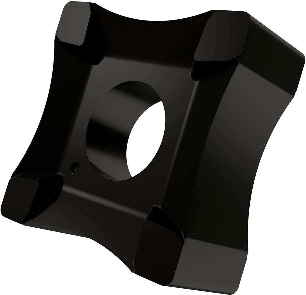 Doppelseitige Scarfing Wendeschneidplatte · quadratisch mit einer Hauptschneidenlänge von 19.05mm · 8.15mm dick und einen Arbeitsradius von 20mm für Rohrdurchmesser von 23 bis 29mm · T9335 MT-CVD beschichtetes funktionelles WC-Co Hartmetall innerhalb des ISO-Substratsbereichs P20-P45/M15-M40 und S15-S25 zum entgraten von Stahl · Edelstahl und Superlegierungen Rohren und Röhren