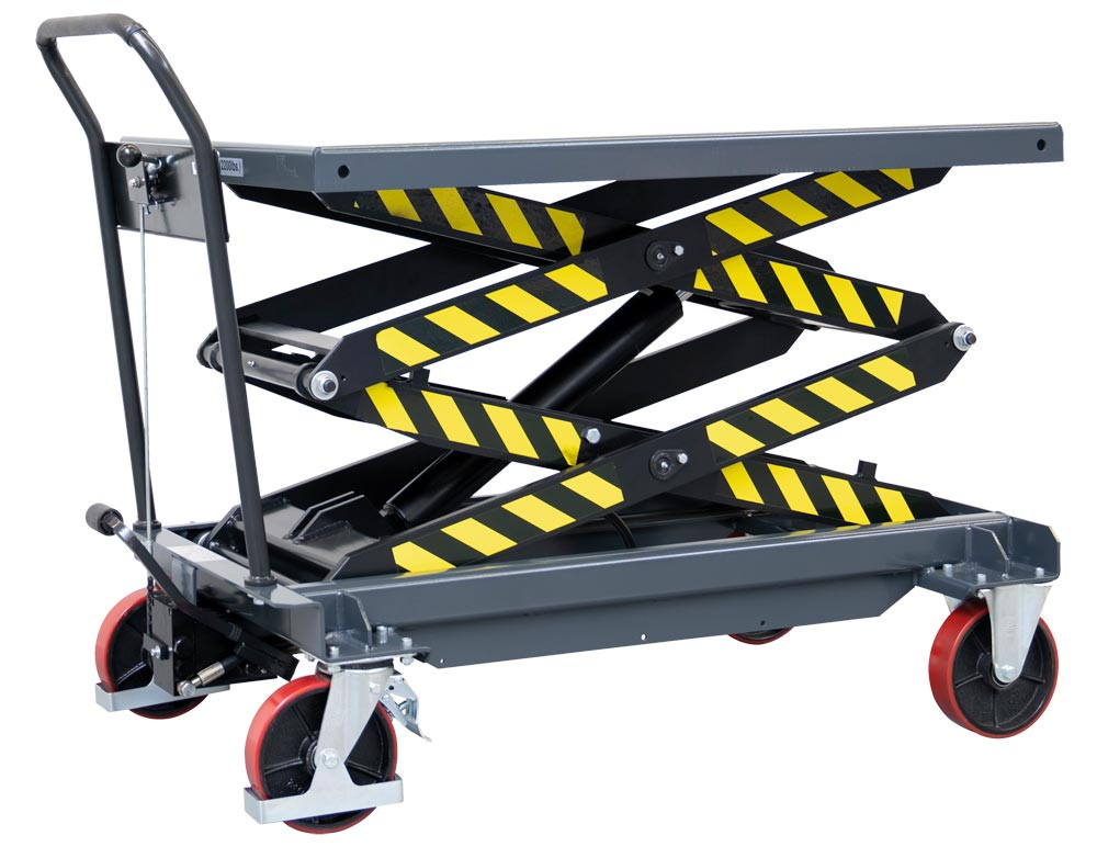 Scherenhubtisch, Traglast 250 kg, Hubbereich 330-910 mm, Tischplatte LxB 830x500 mm, Außen-LxB 1020x500 mm, Bereifung PU E6472290