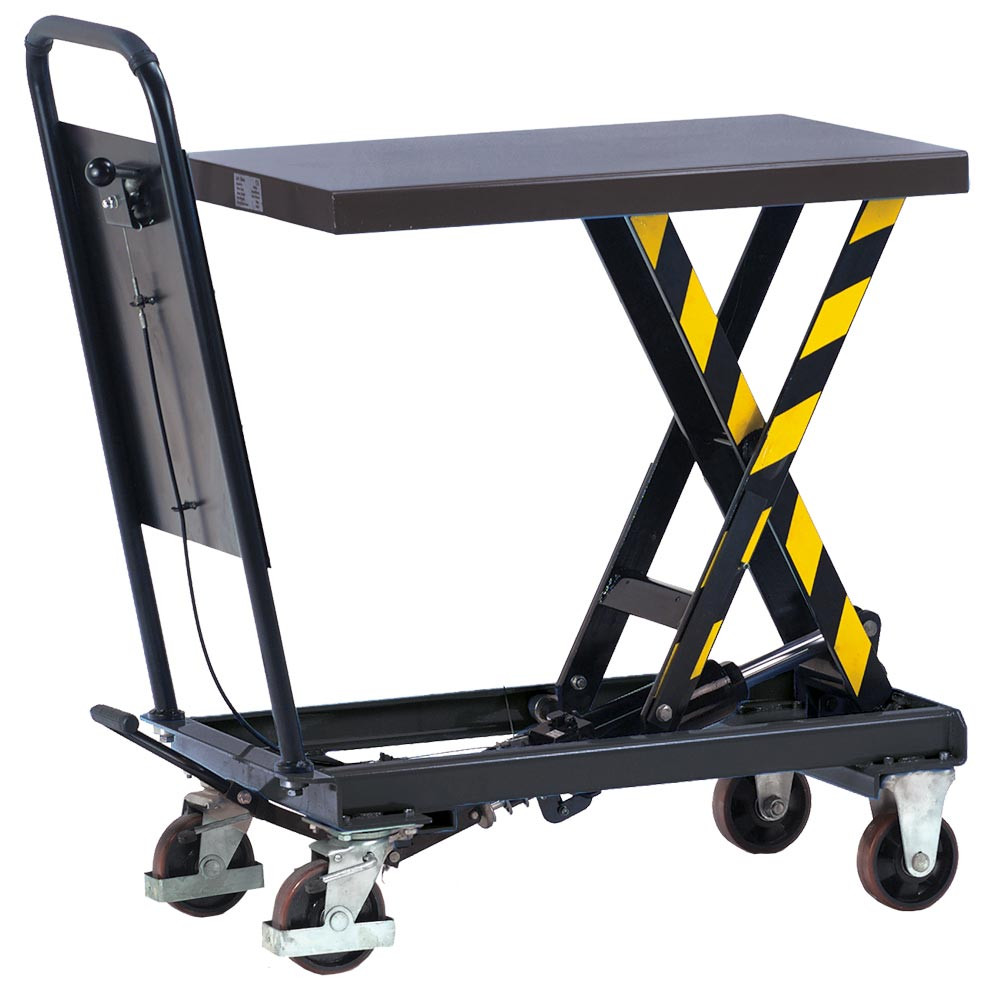Scherenhubtisch, Traglast 250 kg, Hubbereich 330-910 mm, Tischplatte LxB 830x500 mm, Außen-LxB 1020x500 mm, Bereifung PU