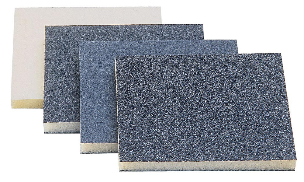 zweiseitig beschichtet · auf Schaumstoff-Unterlage, die sich an das Werkstück anpasst · durch die spezielle Form lassen sich auch schwer zugängliche Stellen, wie Profile, Kanten, Ecken und Rundungen leicht bearbeiten · geeignet für Holzschliff, Lackzwischenschliff, Kunststoffschliff, Metallschliff u. v. m.