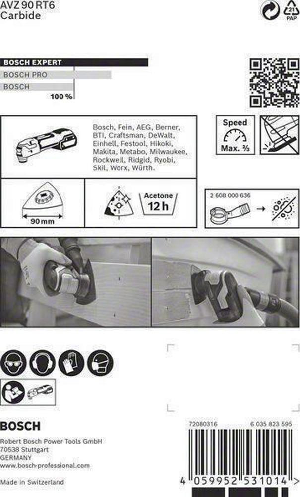 für Multifunktionswerkzeuge · hohe Lebensdauer beim Schleifen von Material verschiedener Art und Anwendungszwecke · mit Bosch Carbide Technology · scharfe Korn mit langer Lebensdauer, da es mit Lösungsmittel gereinigt werden kann · Starlock Aufnahme für maximale Kraftübertragung und bequemen Klingenwechsel