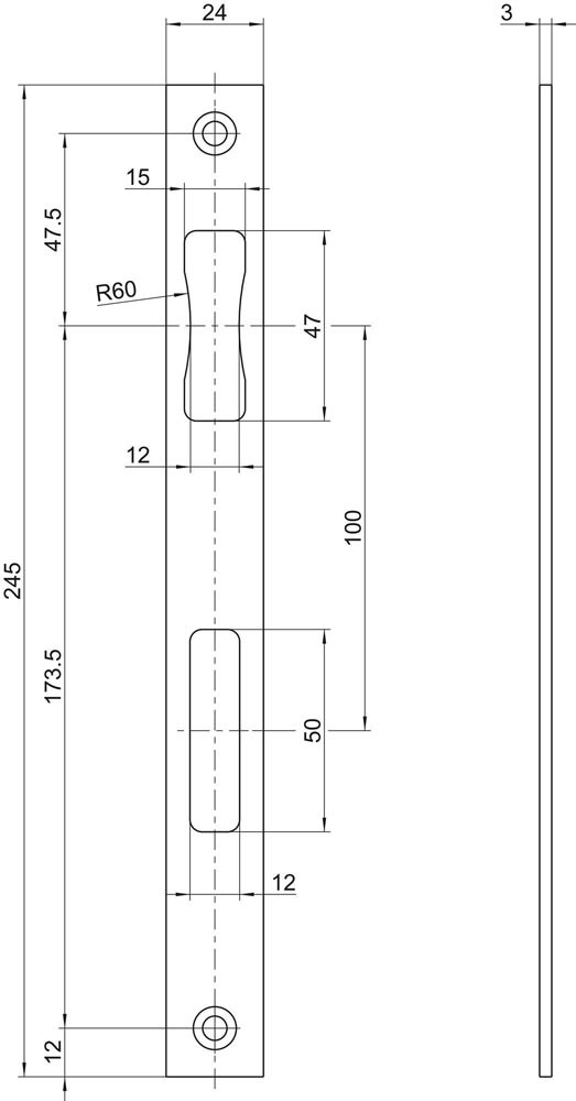 Schließblech B 9000 Edelstahl silber Breite 24 x Länge 270 mm käntig DIN links flach