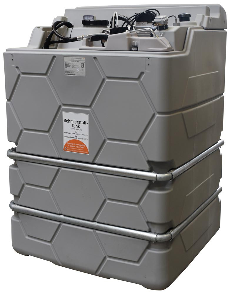 Schmierstoff-Anlage, Außenaufstellung, Vol. 1000 l, 15 m Befüllschlauch, inkl. digitalem, Zähler, mit Klappdeckel, E-Pumpe 9 l/min E1982505