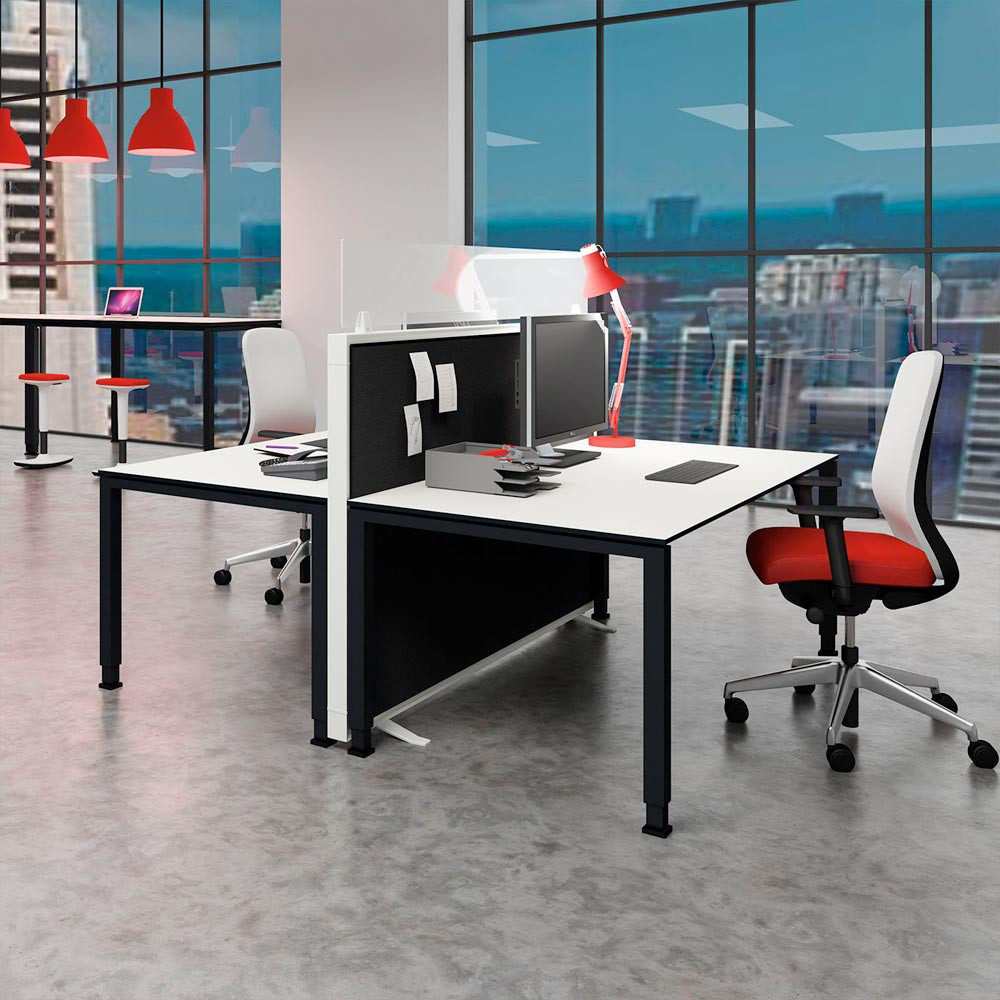 ∙ Höhenteleskopierbares 4-Fuß-Gestell ∙ Quadratrohr 50 x 50 mm ∙ Kunststoffschichtplatte, 25 mm stark mit ABS Umleimer