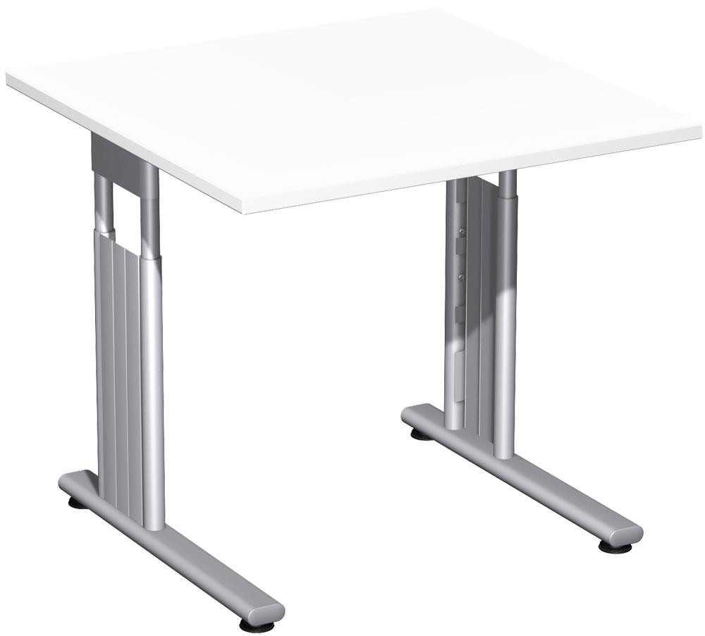 Schreibtisch, BxTxH 800x800x680-820 mm, höhenverstellbar, Platte weiß, C-Fuß-Gestell silber