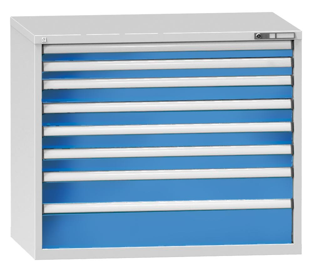 Schubladenschrank, 8 Schubladen: 2x75,4x100, 1x150,1x200 mm, BxTxH 1190x780x990 mm, RAL 7035/5012 E6499346