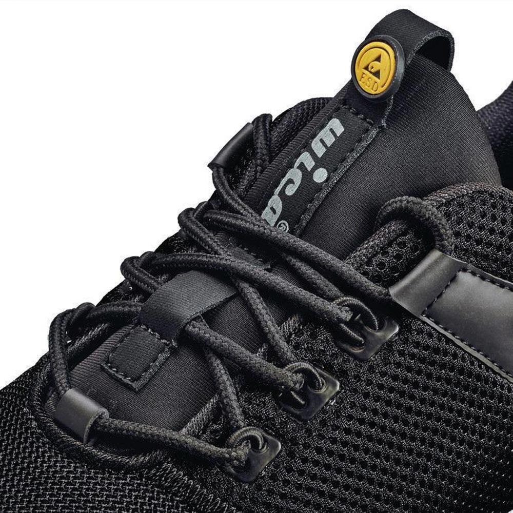 nach EN ISO 20345 · S1P ESD SRA · Schuhweite: 10,5 · Schaft aus Textilmaterial · ergonomisch geformter, gepolsterter Schaftrand aus synthetischem Material · angenähte, gepolsterte Lasche aus Textilmaterial · Verschluss mit dehnbaren Textilösen · herausnehmbares, anatomisches Fußbett · Fiberglaskappe und durchtrittsichere Gewebezwischensohle · antistatische, öl- und säurebeständige, rutschhemmende und super leichte EVA/Gummi-Laufsohle · sportliche Laufsohle · komplett metallfrei · Einsatzbereich: Lager, Spedition, Industrie etc.