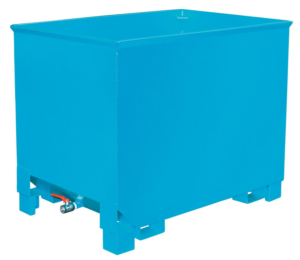 · Robuste Stahlkonstruktion mit glatten Innenwänden · Öl- und wasserdicht · 3-fach stapelbar auf 4 Stapelecken · Entleerung mittels Drehgerät