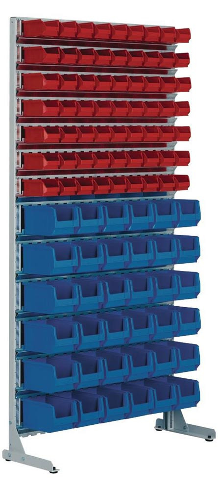 Ständerregal einseitig H2010xB1010xT400mm 63 x MK5 rot, 36 x MK4 blau lichtgrau, RAL 7035 E6495531