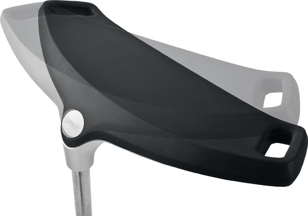 stabiler Standfuss aus Aluminium mit Wechselgleitern aus Filz oder Kunststoff je nach Bodentyp · ergonomische, um 4 Grad geneigte Standsäule aus gestrahlten Aluminium · breiter Komfort-Sitz (500 mm) aus Soft-Touch-Integralschaum, um 20° schwenkbar · stufenlose Gasfeder-Höhenverstellung · seitlich integrierte Halte-, Zieh- und Tragegriffe