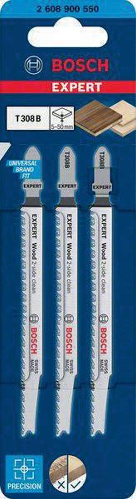 Stichsägeblatt Wood 2-side clean T 308 BO Gesamtlänge 117 mm Zahnteilung 2,2 mm 3 Stück / Karte E6423400