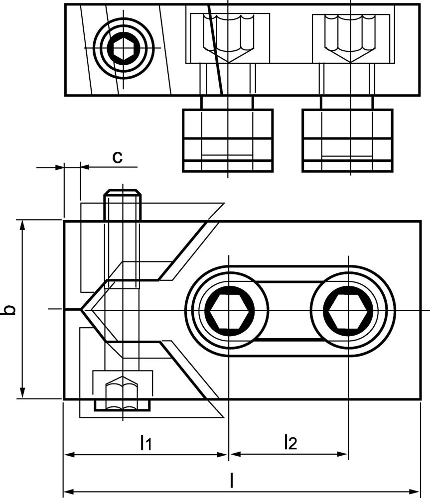 vergütet und im Brünierton angelassen · diese Tiefspannbacken eignen sich durch ihre flache Bauart für die Bearbeitung der meisten vorkommenden Werkstückabmessungen · vergütete Backen spannen durch Keilwirkung gleichzeitig nach vorn und unten · Lieferung mit Befestigungsschrauben ISO 4762 (10.9), Muttern für T-Nuten DIN 508 und Sechskantschraubendreher ISO 2936