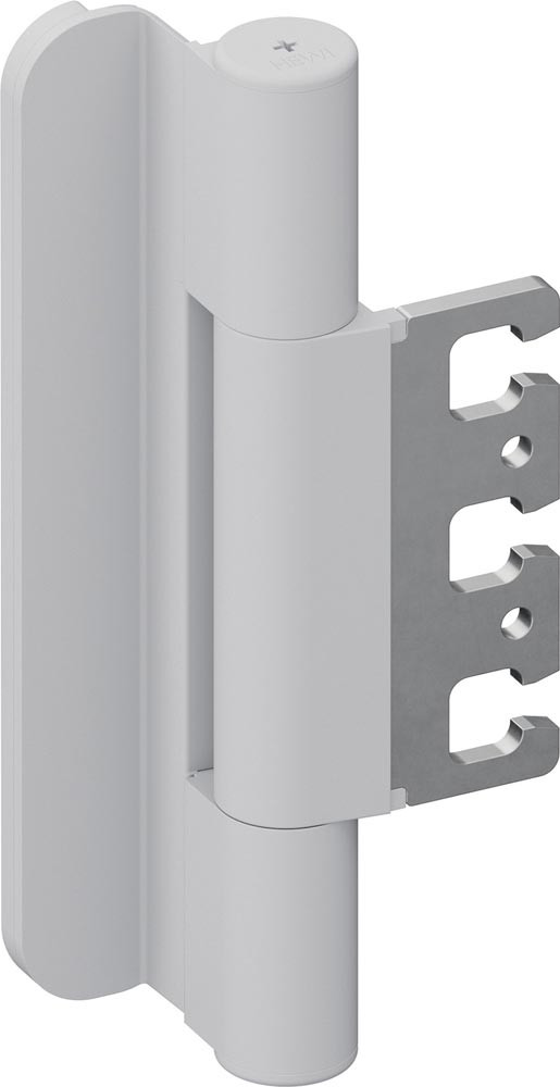 Dreirollenband für gefälzte Türen mit einem Gewicht bis zu 180 kg · aus mattem Polyamid mit tragenden Stahlgerüst · geschlossene Bandrolle · Bauhöhe 160 mm · Bandrollendurchmesser 21 mm · Edelstahlachse, DIN rechts und DIN links verwendbar · zur Montage an Holz-, Stahl- und Aluminiumtüren mit dreidimensional verstellbaren Aufnahmeelementen VX... und VZX... · Ausführungsvorschlag! Bitte alle Maße und baulichen Gegebenheiten im Auftragsfall prüfen!