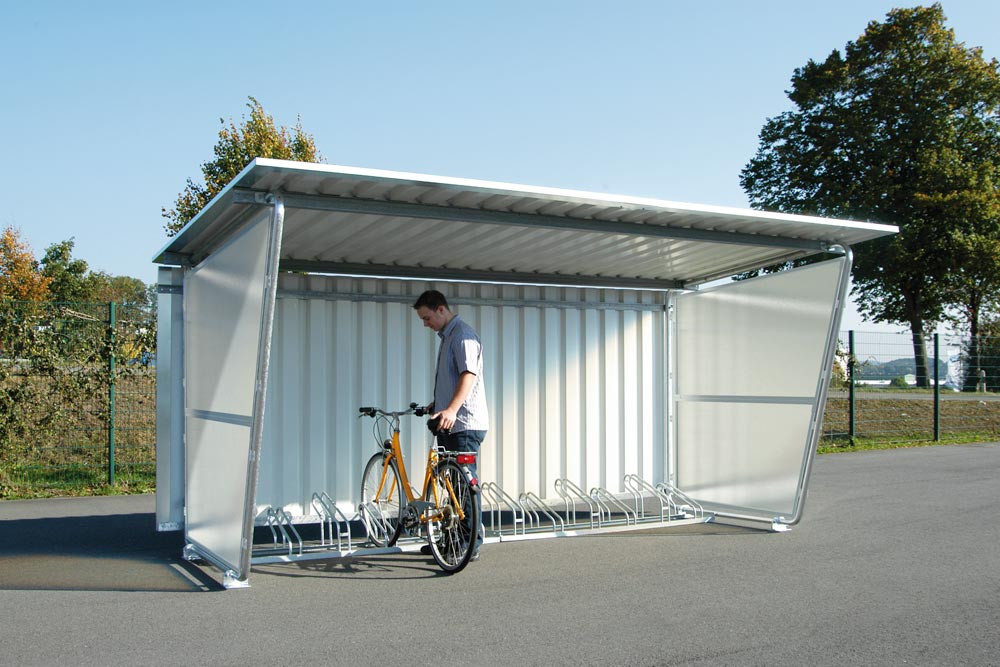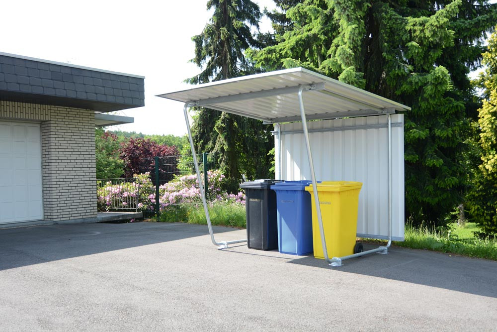 ∙ Modularer Aufbau durch Grund- und Anbaueinheiten ∙ Tragende Rahmenkonstruktion aus Rundrohr mit Fußplatten zum Aufdübeln ∙ Pultdach mit Gefälle nach hinten aus 2 tragenden Pfetten mit Eindeckung aus Profilblech RAL 9002 grauweiß beschichtet ∙ Schneelast 75 kg/m2 ∙ Alle Stahlteile verzinkt ∙ Anlieferung erfolgt zerlegt ∙ Leichte Endmontage ohne Spezialwerkzeug ∙ Zum Lieferumfang gehören die Montageanleitung, das Bodenbefestigungsmaterial und die Bauzeichnung ∙ Durch umfangreiches Zubehör individuell erweiterbar