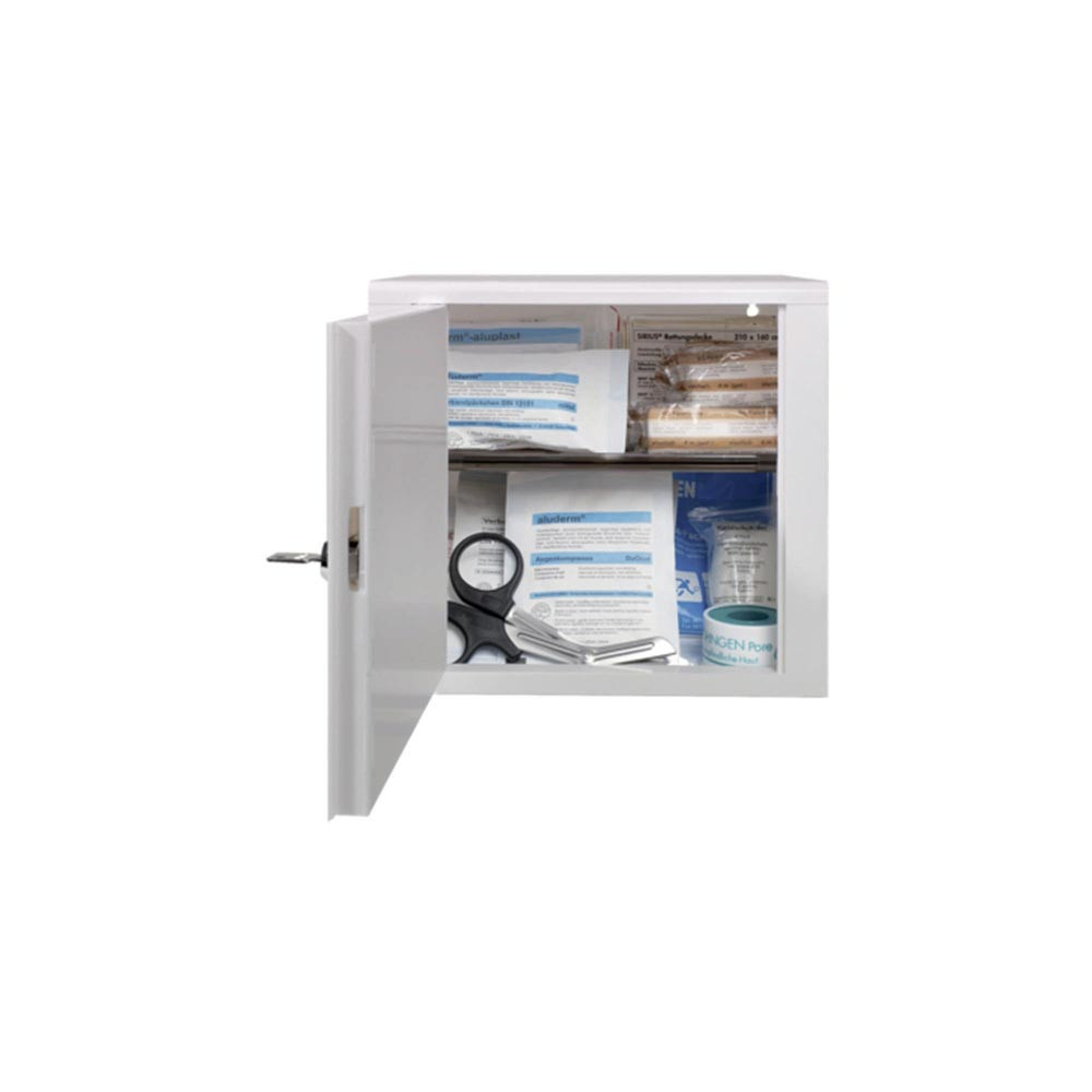 Lieferumfang: 1 Erste Hilfe Füllung DIN 13157 , 2 x Schlüssel, Befestigungsmaterial