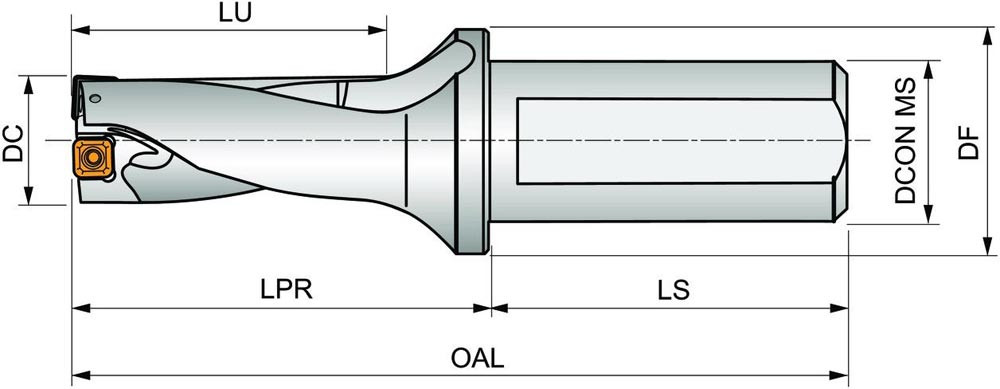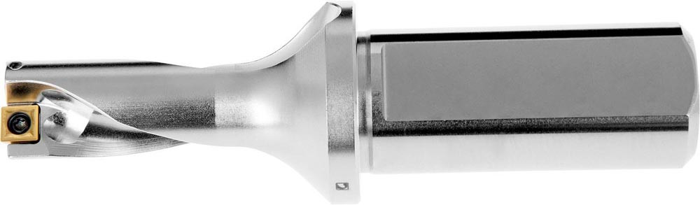 Wendeschneidplattenbohrer zum einsetzen von einer XPET 0602.. Wendeschneidplatten als Zentrumschneide und einer SCET 0602.. Wendeschneidplatte als Außenschneide · Bohrdurchmesser 21mm in Kombination mit EP253253 · geeignet für eine radiale Verstellung von -0.10 bis +0.50mm · mit einem 25mm abgeflachten Zylinderschaft nach ISO 9766 und Innenkühlung für maximale Bohrtiefen bis 2 x D