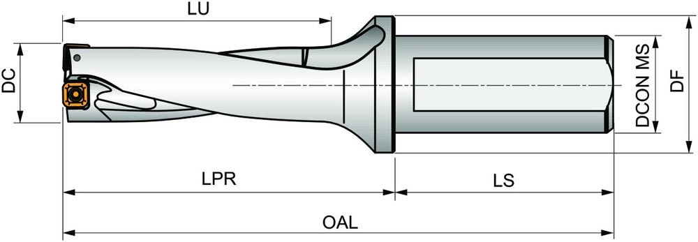 Wendeschneidplattenbohrer zum einsetzen von einer XPET 0602.. Wendeschneidplatten als Zentrumschneide und einer SCET 0502.. Wendeschneidplatte als Außenschneide · Bohrdurchmesser 17.5mm in Kombination mit EP253253 · geeignet für eine radiale Verstellung von -0.50 bis +0.50mm · mit einem 25mm abgeflachten Zylinderschaft nach ISO 9766 und Innenkühlung für maximale Bohrtiefen bis 3 x D