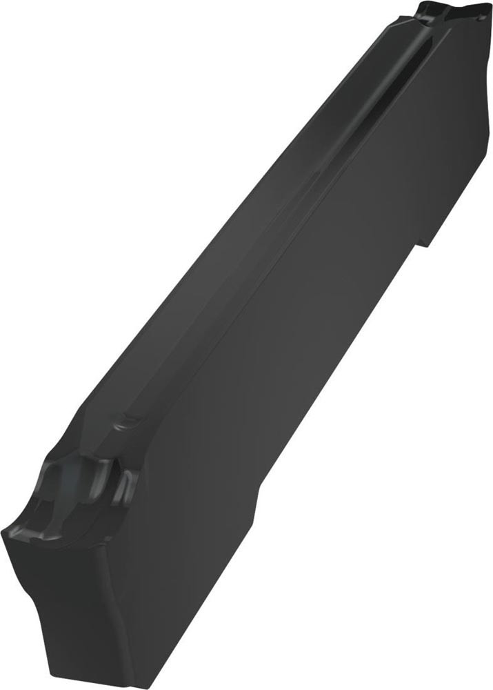 Doppelseitige Wendeschneidplatte Ein- und Abstechen · 25 mm lang · mit einer Schnittbreite von 2 mm und Eckradien von 0,2 mm und einer Schnittbreitentoleranz von ±0,05. Sorte T7325 MT-CVD-beschichtetes · funktional abgestuftes WC-Co-Hartmetall im ISO-Sortenbereich M10–M25 für die Bearbeitung von rostfreiem Stahl. PM-Geometrie mit hochpositivem Spanwinkel · erste Wahl zum Abstechen und kontinuierlichen bis leicht unterbrochenen Schnitten.